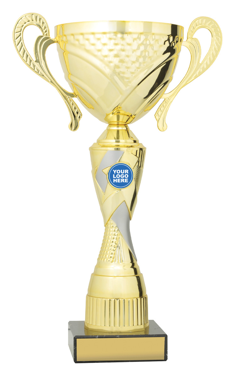The gold & silver 'Trident' series of cups present stylish trophies in 5 different sizes with prominent space for your 25mm centre insert. Gold metal bowls with handles and classic, heavy marble bases. Plastic stem.