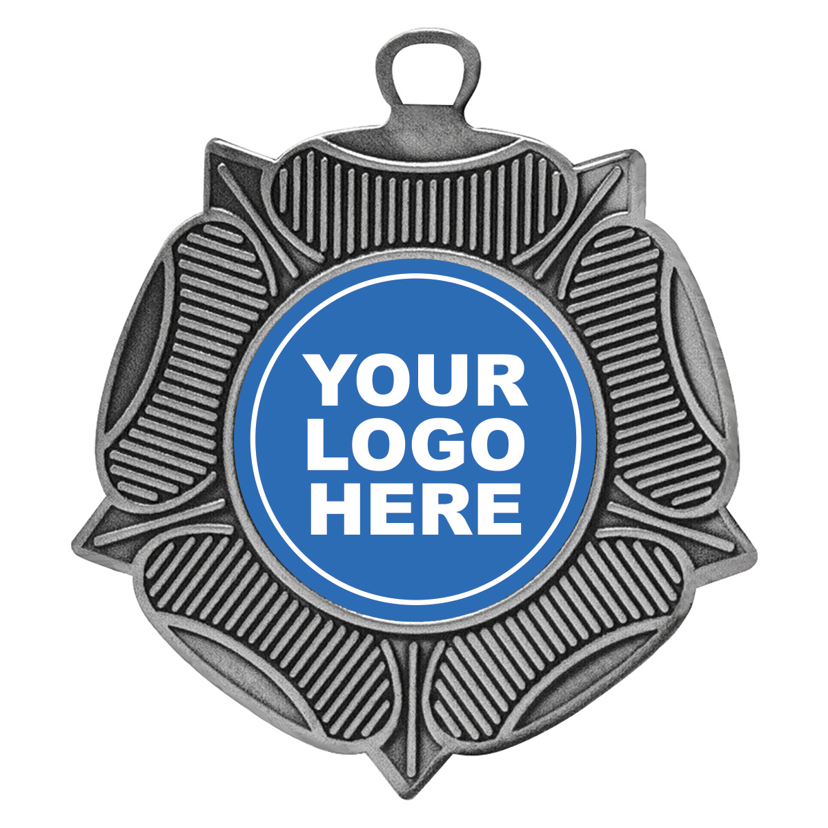 Price includes custom printed logo insert, neck ribbon and engraved plate on back of medal