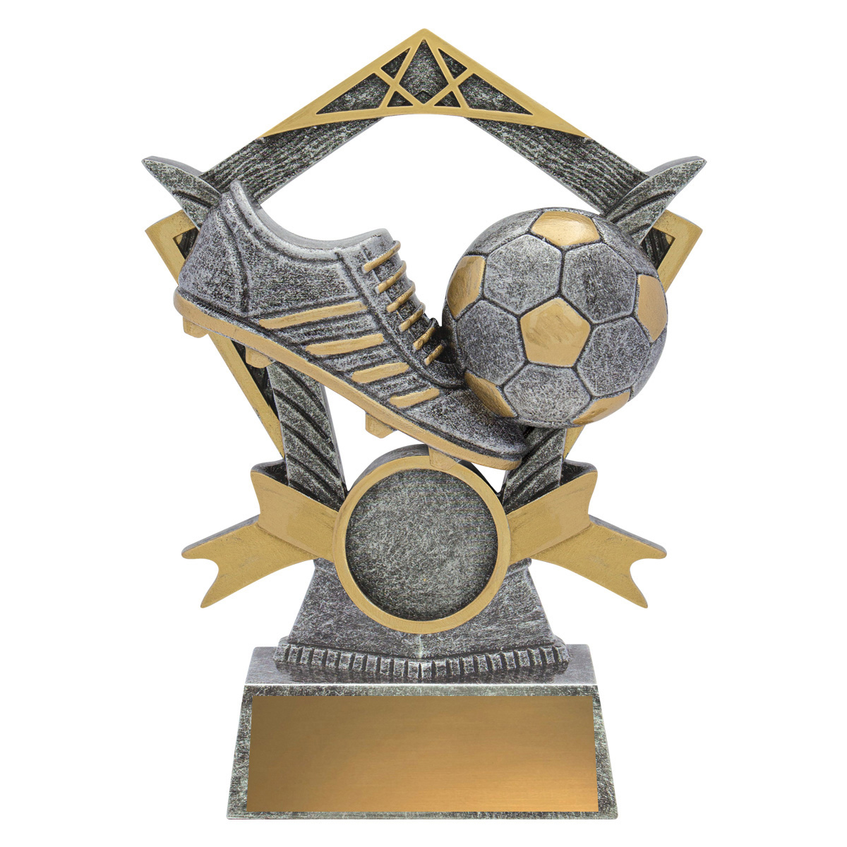The Valour series of trophies presents a strong design of trophy highlighting the main elements for your sport. Finished in antique silver and gold with space for your custom logo.