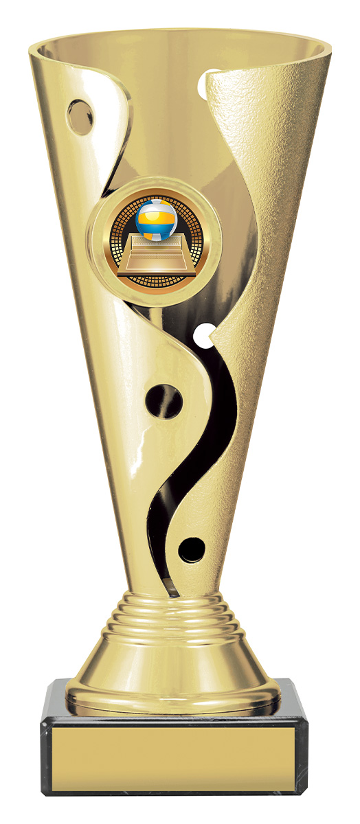 Carnival plastic cups present a distinctive cup style trophy with attractive design - on classic black marble base for your engraving.