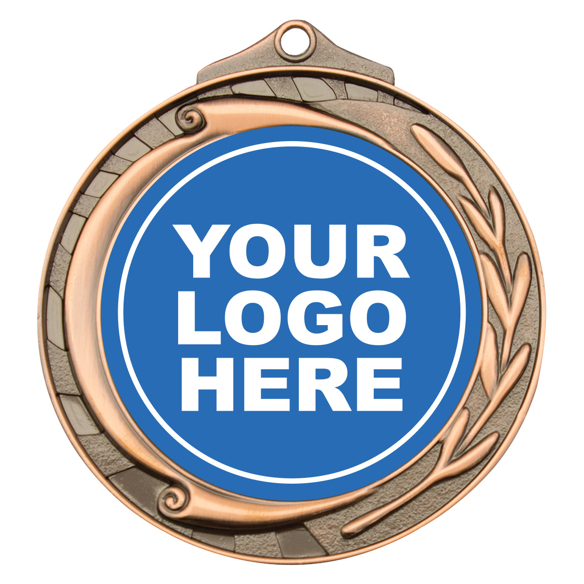 Larger, prestige version of the insert medal in antique gold, silver and bronze. Medals feature an elegant wreath and scroll design that frames the space for your 50mm centre insert. A beautiful medal for all events.